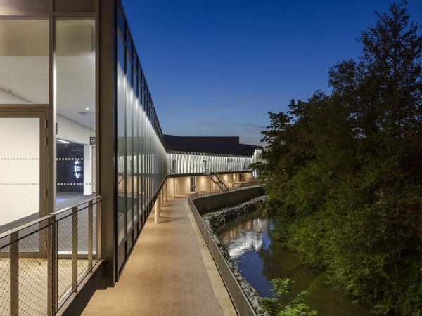 Un large escalier invite le spectateur à accéder aux salles situées au niveau supérieur, où un déambulatoire largement vitré desservira les salles de cinéma. Véritable promenade pour le visiteur, cet espace de circulation en lévitation devient un élément architectural fort du projet. Ce dernier donne la possibilité de patienter avant d’accéder aux salles et de permettre aux flux de se croiser sans difficulté. Vitré sur tout la hauteur, il offre une vue sur les abords de la Durenque qui bénéficieront d’un traitement paysager particulier.