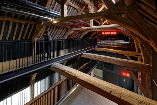 Le cinéma s'étend au sein d'une grange dotée d'une charpente remarquable, préservée et mise en valeur, et en extension de cette grange. L'existant est remodelé afin d'accueillir une salle de 148 places avec écran de 7.5m, et le Hall qui distribue lui-même l' espace dédié aux ateliers cinéma et avant premières ainsi que l'extension du cinéma; cette dernière abrite une salle de 257 places avec écran de 13m, le dispositif de circulations verticales et les équipements techniques. Les salles sont confortables, équipées pour des projections en numérique et en argentique.