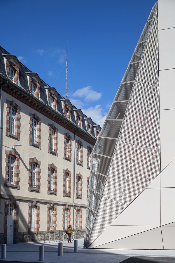 Les trois corps de bâtiment de l’ancienne caserne d’Aurillac génèrent la place de la Paix, dont les angles ouverts laissent le regard du promeneur découvrir, au sud-est et au nord-est, les lignes libres et vertes du « grand paysage » dominant la cité.
