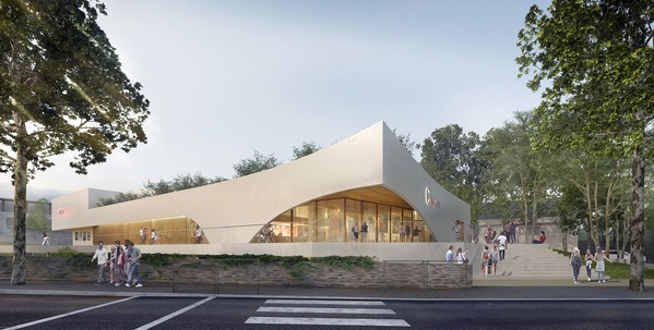 Le futur cinéma de Nort-sur-Erdre propose de multiples ouvertures et connections avec son environnement proche, venant renouer le site avec son territoire. Le projet paysager accompagne son insertion urbaine, intégrant le bâtiment dans un écrin de verdure.