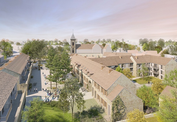 Réhabilitation patrimoniale et restructuration de la ferme des Tournelles pour accueillir la nouvelle mairie, une crèche, des commerces et des logements. Construction d’une médiathèque, d’une résidence intergénérationnelle de 65 logements et d’une résidence privée de 10 logements.