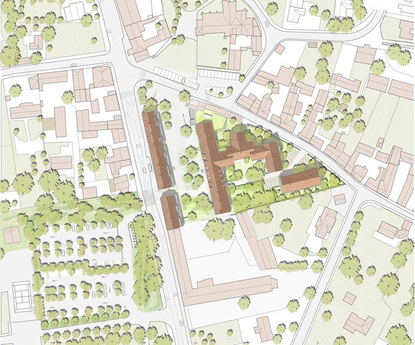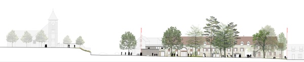 La demande du programme de déplacer la mairie actuelle et de démolir les murs d’enceinte nord et sud constitue une première étape nécessaire pour ouvrir le site et créer un espace généreux s’étendant depuis la place du Général Leclerc et le parvis de l’église Saint-Paul vers le sud du site.