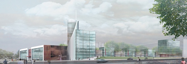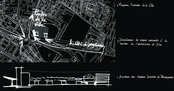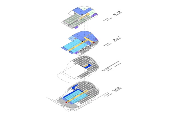 La conception du projet joue sur les trois échelles temporelles de perception du site: l'une, rapide, vécue depuis le boulevard périurbain au sud, une seconde perception à l'Ouest, plus urbaine et d'usage, vécue depuis le boulevard Pinel et ses transports en commun, et enfin la perception quotidienne vécue par les logements situés au Nord et à l'Est du programme.Le fonctionnement commercial s'appuie sur un parcours piéton protégé ludique, d'Est en Ouest, irrigant essentiellement des moyennes unités commerciales ponctuées de zones de restauration et de divertissement sous une coupole faisant écho à la célèbre coupole du boulevard Haussmann.