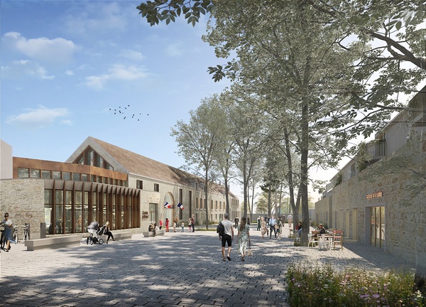 Réhabilitation patrimoniale et restructuration de la ferme des Tournelles pour accueillir la nouvelle mairie, une crèche, des commerces et des logements. Construction d’une médiathèque, d’une résidence intergénérationnelle de 65 logements et d’une résidence privée de 10 logements.